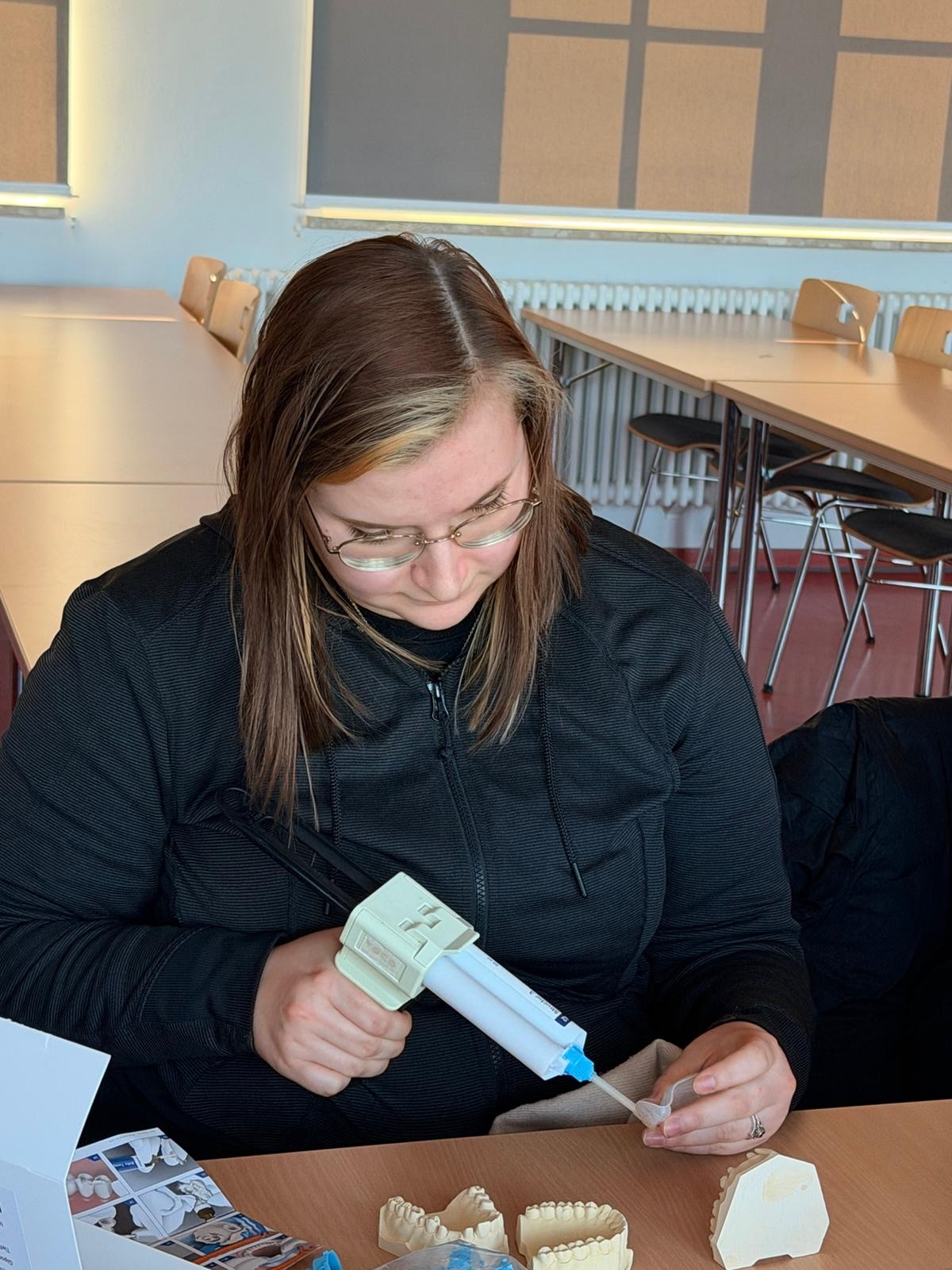 Die Auszubildenden konnten Ihr Wissen zu den Säulen der Prophylaxe, Putztechniken, Versiegelung und Fluoridierung, Definitive und provisorische Füllmaterialien, Bondings, Herstellung von Provisorien, Abformtechniken und Abformmaterial sowie Stifte in der Zahnheilkunde mit Stumpfaufbau erweitern und festigen.